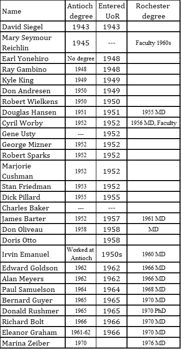 Federighi’s record of Antioch College graduates attending medical school 1930—59