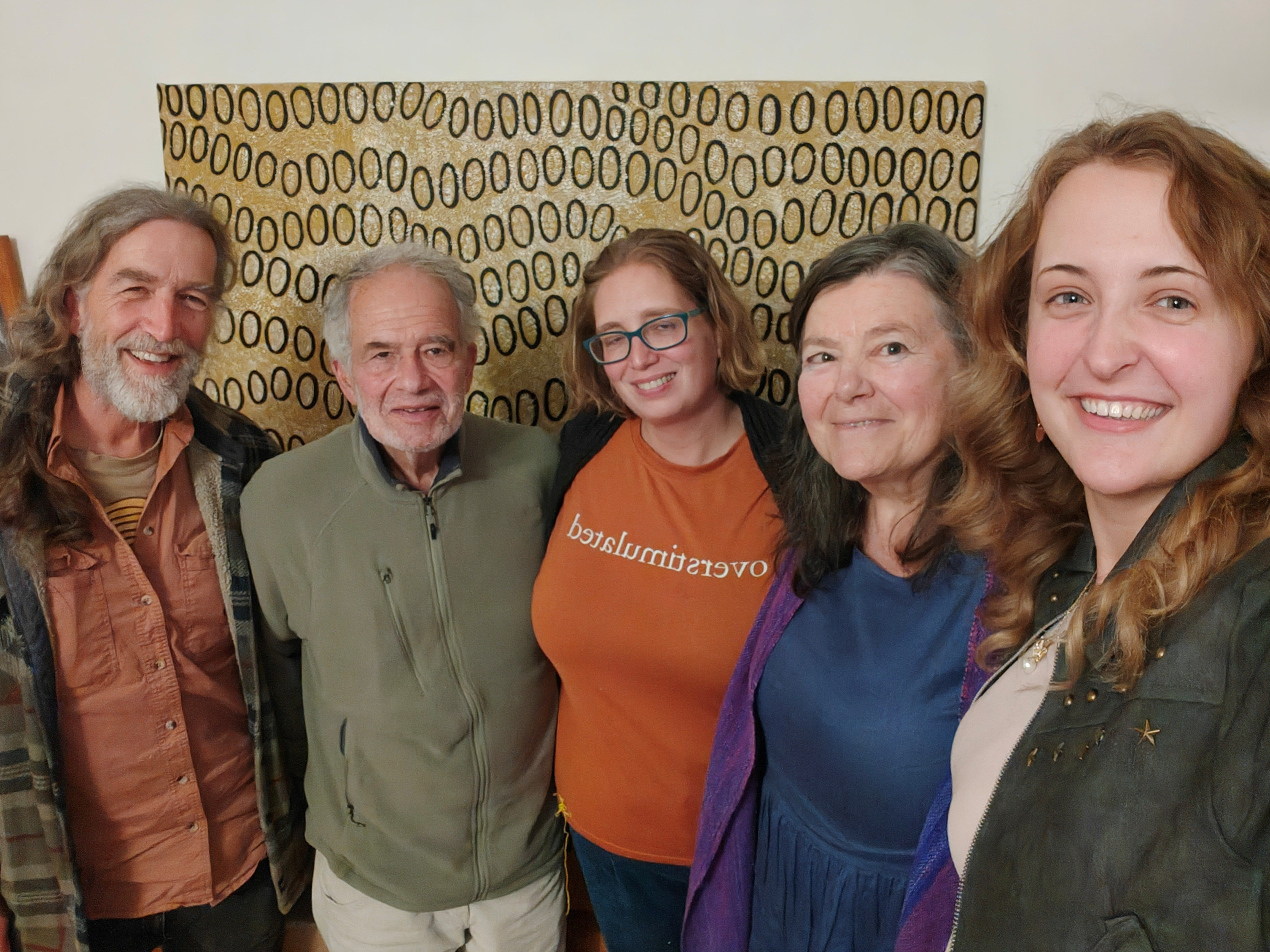 In the photo, from the left, Lincoln Kern 1986, Tom Fisher 1964, Amy Gill 2006, Louisa Joy Wise (Early 1970’s) and Heather Cain 2026