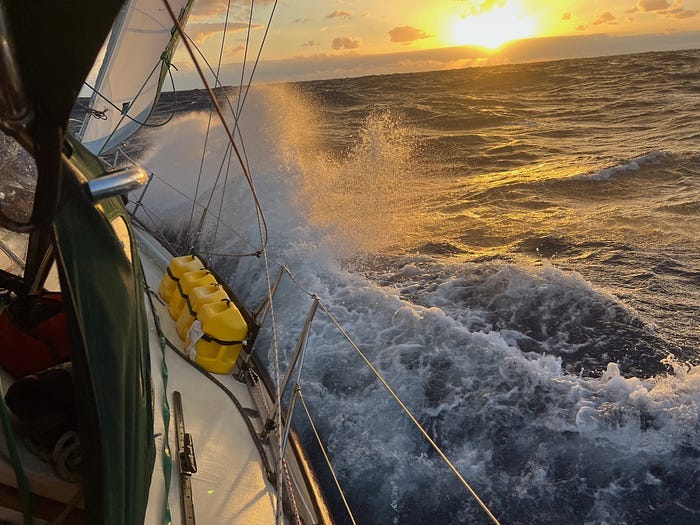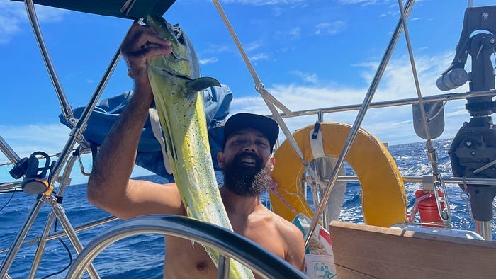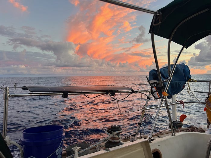 The crew made sure all our solar was working. We had loaded up on fuel, both diesel for the engine and food for ourselves. We knew there was a chance we’d need to motor a lot, and we didn’t run out of energy. The diesel engine can generate electricity, but it’s better to generate it from the sun. And if we ran out of everything, we could just drift … but we would need to eat!