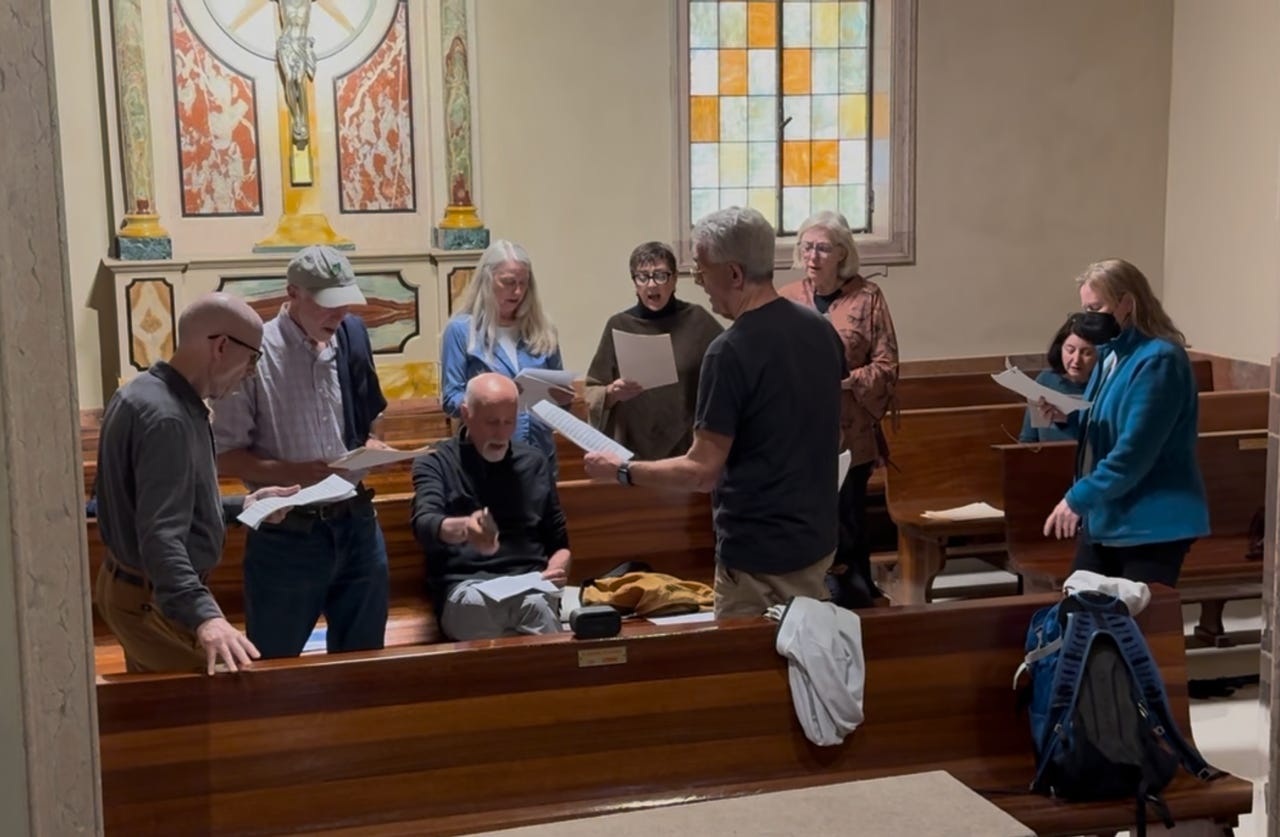 We chose the choir section behind the main altar, cued up the recording of the ‘75 chorus as a potential aid and then realized how awkward it was to situate ourselves and get ready to sing some of the most complex choral music ever written – without a leader. Without John. It was hard. We were awful. Every one of us struggled to find our best voice and tune to each other. So the volume was turned up just enough on the recording and we had the uncanny sensation of singing along with our younger selves – the small church resonating with the polyphonic, other-worldly beauty of Ockeghem and Dunstable. We left hoping that if we did indeed have a chance to sing in the church in La Morra the next day we would do it justice. Then we split up into the night, just like we often did during our original tour, some to rest, some to wander the town, some to find pizza or fried porcini mushrooms and continue the conversations of the day around the warmth of a communal table.
